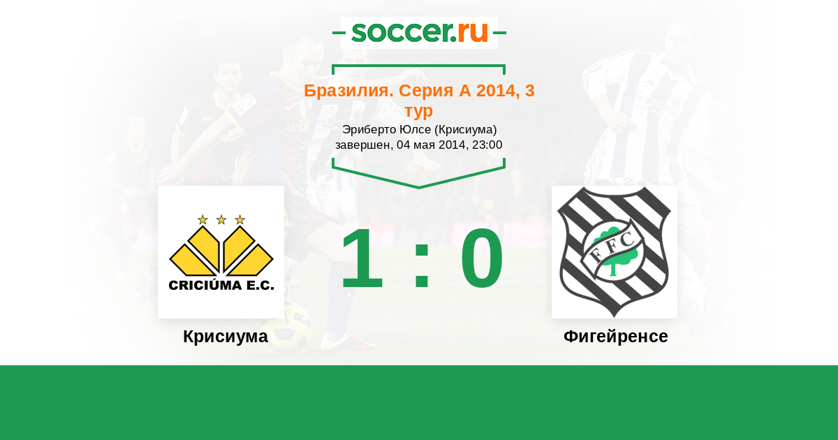 Бразилия. Серия А 18.09.2014 Фигейренсе Логотип футбольный клуб Фигейренсе (Флорианополис) 1:1 Логотип футбольный клуб Крисиума Крисиума