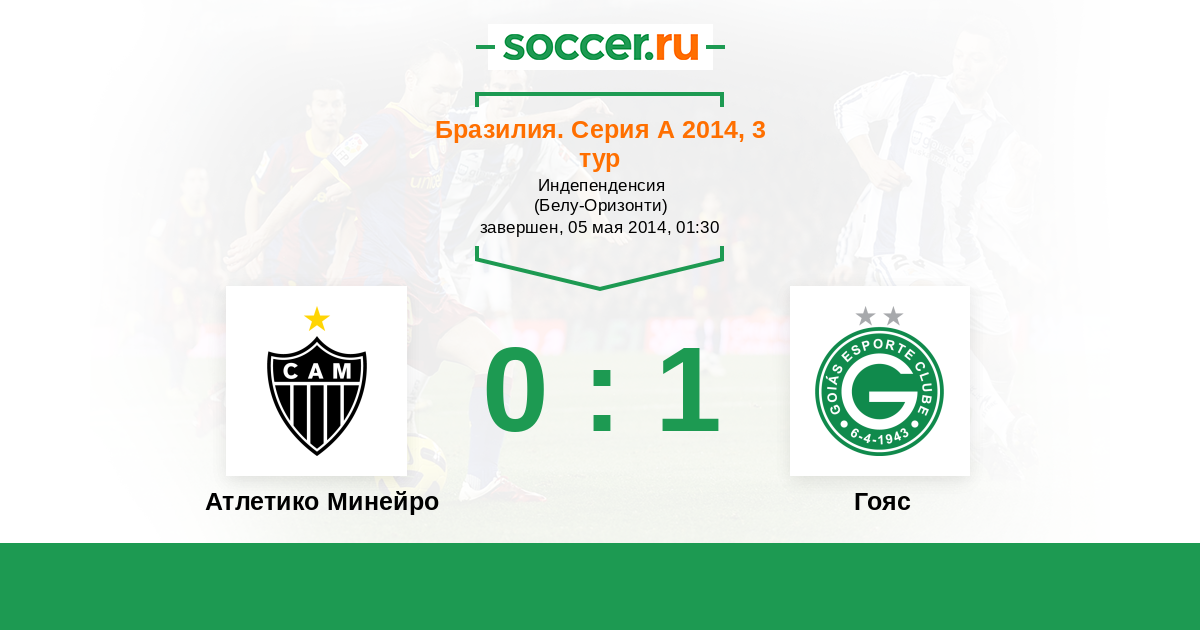 Бразилия. Серия А 19.09.2014 Гояс Логотип футбольный клуб Гояс (Гояния) 2:3 Логотип футбольный клуб Атлетико Минейро (Белу-Оризонти) Атлетико Минейро