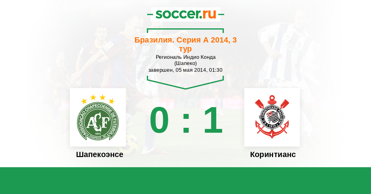 Бразилия. Серия А 19.09.2014 Коринтианс Логотип футбольный клуб Коринтианс (Сан-Паулу) 1:1 Логотип футбольный клуб Шапекоэнсе Шапекоэнсе