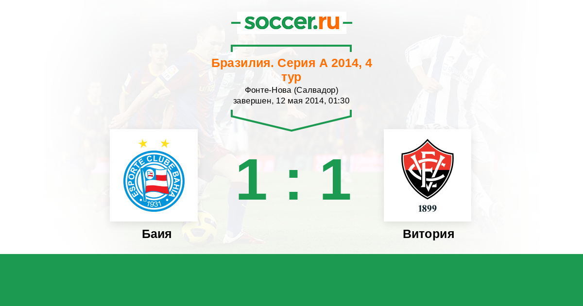 Бразилия. Лига Баияно 23.02.2014 Витория Логотип футбольный клуб Витория (Сальвадор) 1:1 Логотип футбольный клуб Баия (Салвадор) Баия