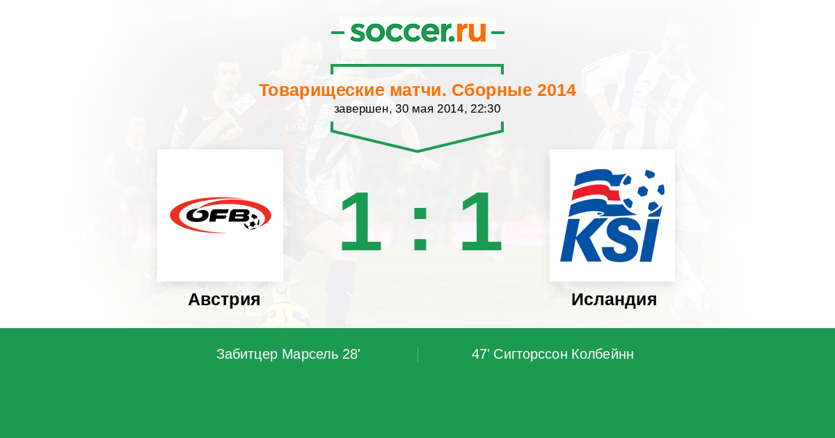 Протокол матча Австрия против Исландия
