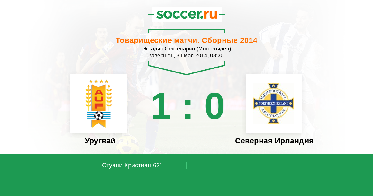 Протокол матча Уругвай против Северная Ирландия