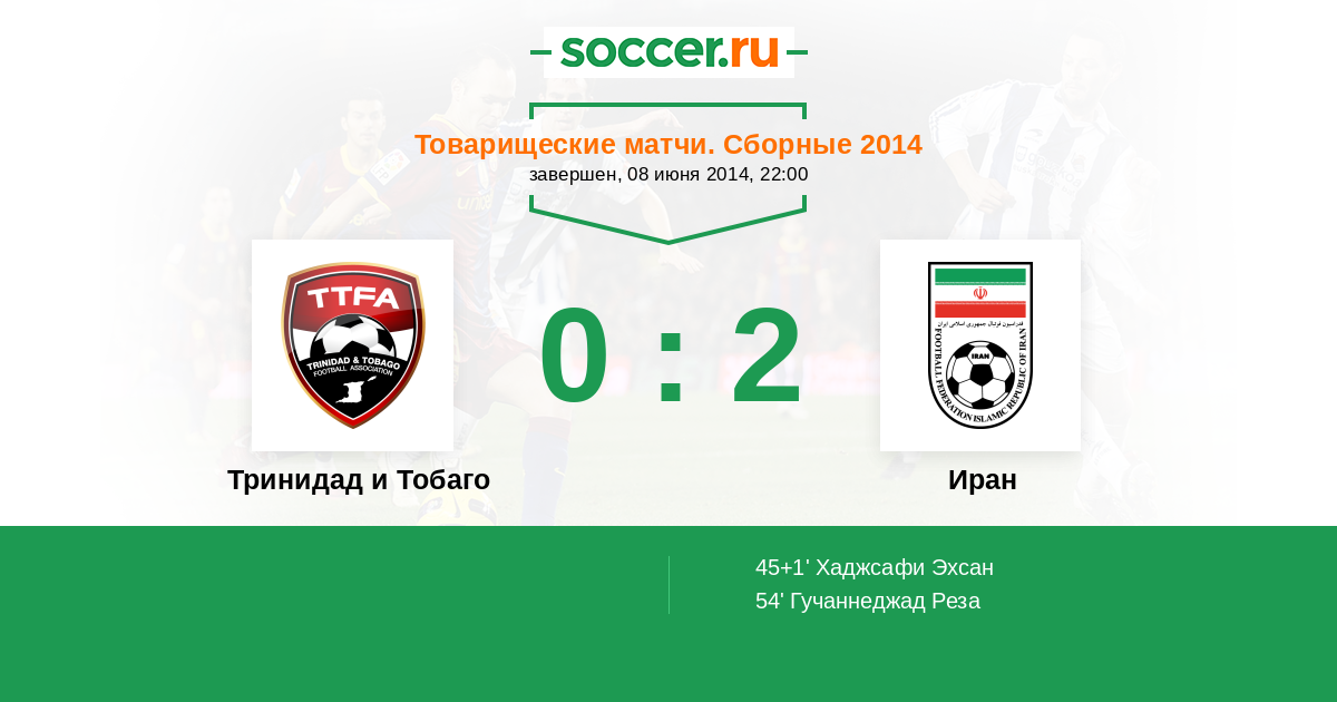 Протокол матча Тринидад и Тобаго против Иран