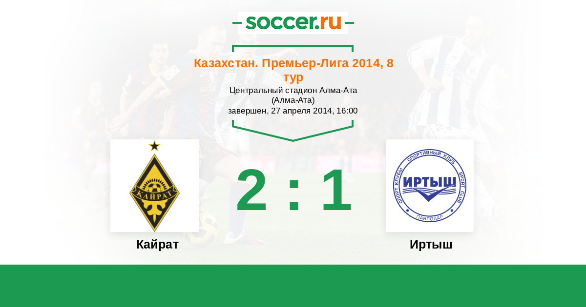 Казахстан. Премьер-лига 27.06.2014 Иртыш Логотип футбольный клуб Иртыш (Павлодар) 0:1 Логотип футбольный клуб Кайрат (Алматы) Кайрат