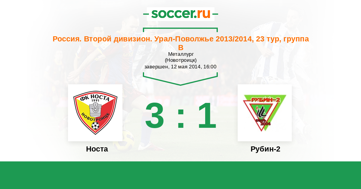 Россия. Вторая лига. Группа 4 07.08.2014 Рубин-2 Логотип футбольный клуб Рубин-2 (Казань) 2:0 Логотип футбольный клуб Носта (Новотроицк) Носта