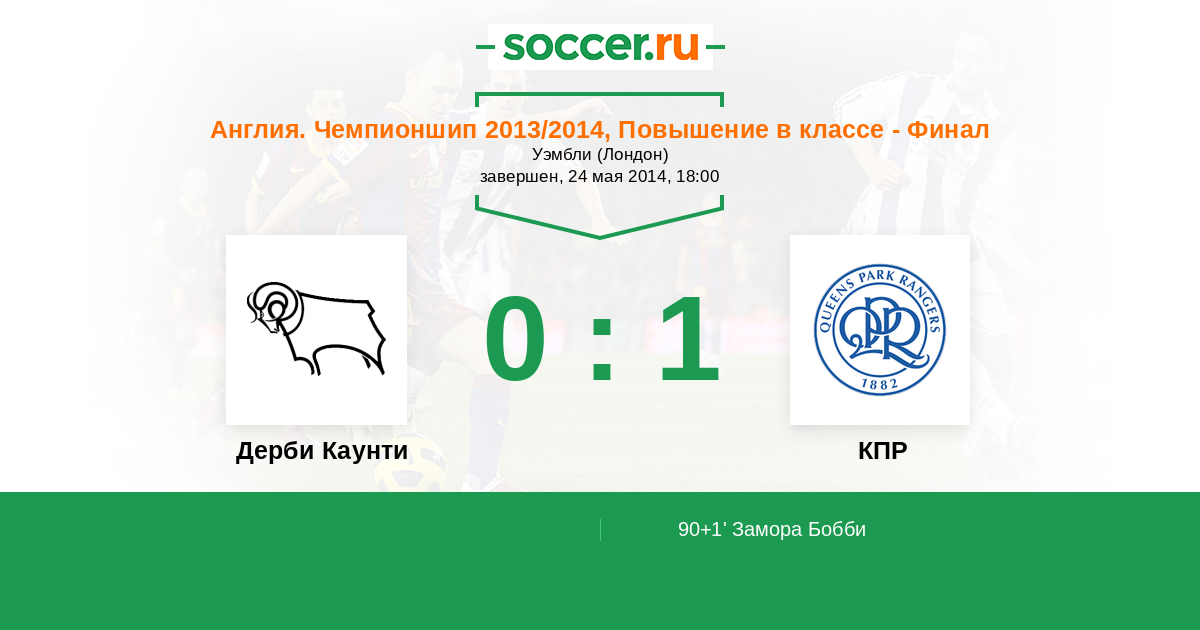 Протокол матча Дерби Каунти против КПР