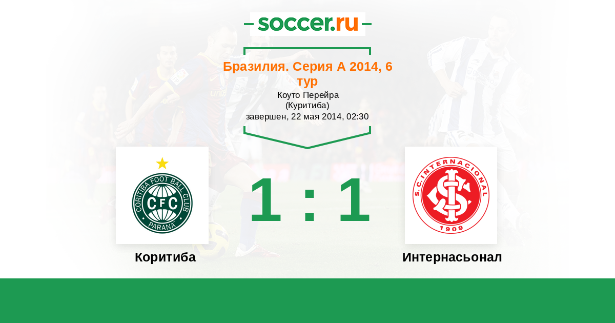 Бразилия. Серия А 29.09.2014 Интернасьонал Логотип футбольный клуб Интернасьонал (Порту-Алегри) 4:2 Логотип футбольный клуб Коритиба Коритиба