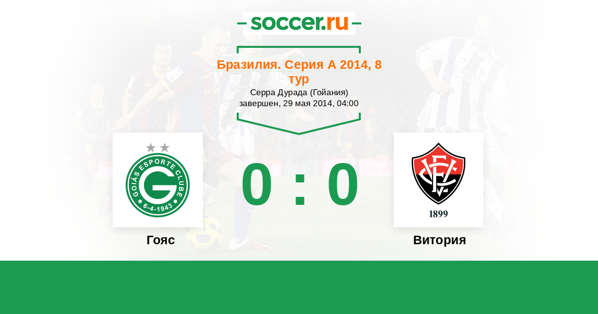 Бразилия. Серия А 09.10.2014 Витория Логотип футбольный клуб Витория (Сальвадор) 2:2 Логотип футбольный клуб Гояс (Гояния) Гояс