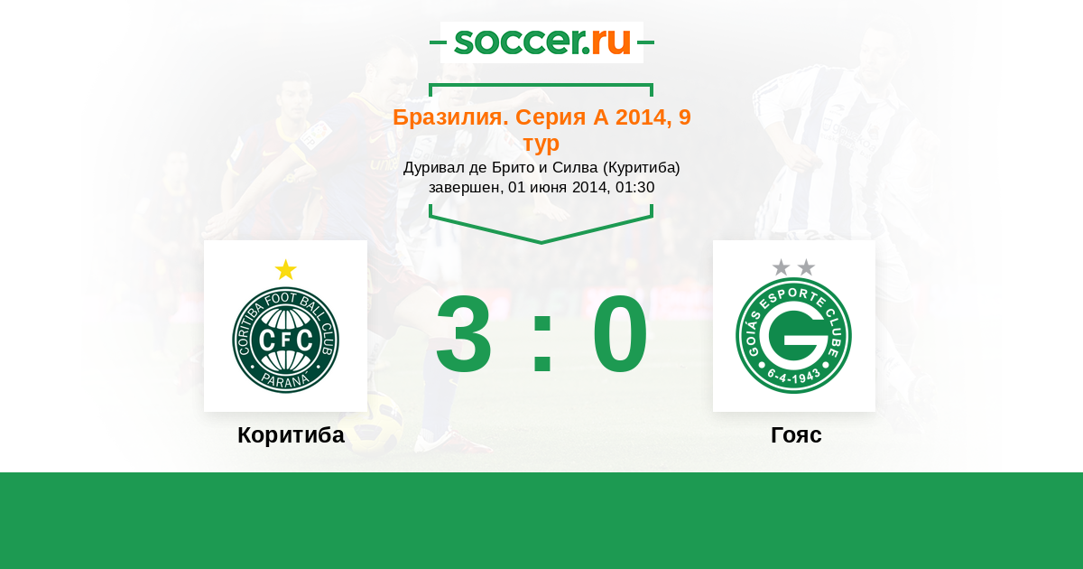 Бразилия. Серия А 12.10.2014 Гояс Логотип футбольный клуб Гояс (Гояния) 3:0 Логотип футбольный клуб Коритиба Коритиба