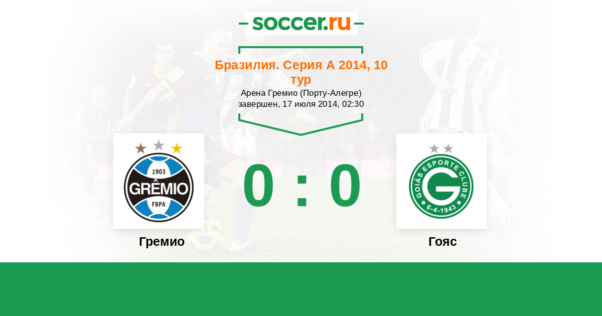 Бразилия. Серия А 19.10.2014 Гояс Логотип футбольный клуб Гояс (Гояния) 0:0 Логотип футбольный клуб Гремио (Порту-Алегри) Гремио