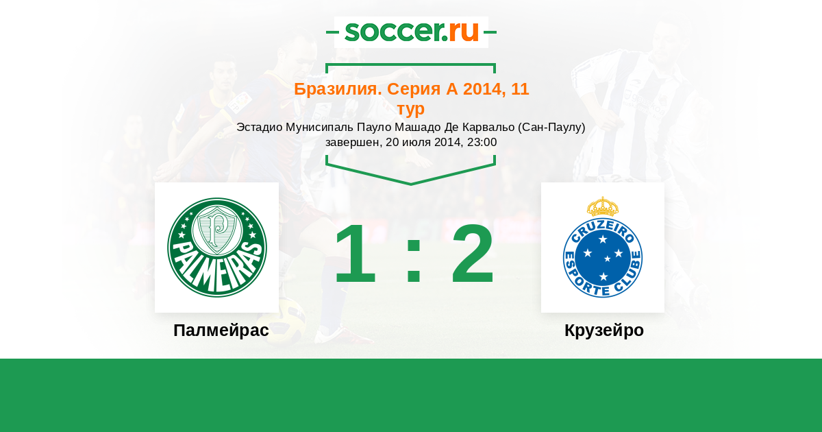 Бразилия. Серия А 29.07.2012 Крузейро Логотип футбольный клуб Крузейро (Белу-Оризонти) 2:1 Логотип футбольный клуб Палмейрас (Сан-Паулу) Палмейрас