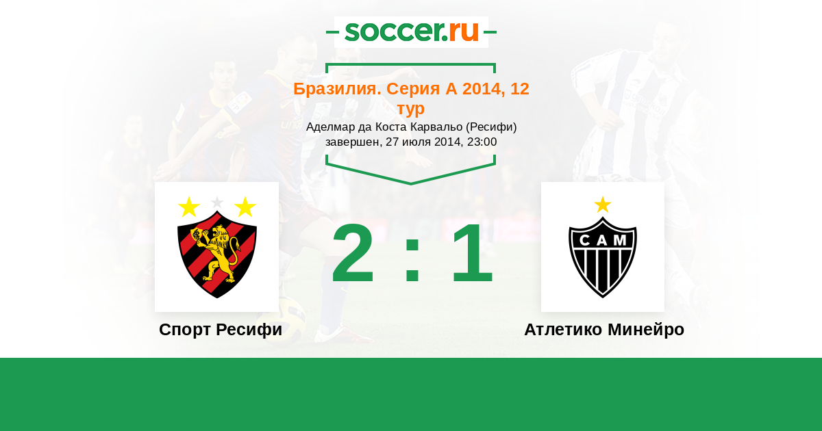Бразилия. Серия А 26.10.2014 Атлетико Минейро Логотип футбольный клуб Атлетико Минейро (Белу-Оризонти) 3:2 Логотип футбольный клуб Спорт Ресифи Спорт Ресифи