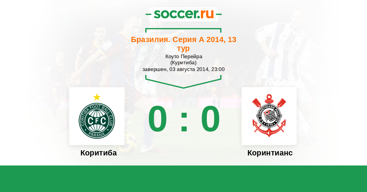 Бразилия. Серия А 18.08.2013 Коринтианс Логотип футбольный клуб Коринтианс (Сан-Паулу) 1:0 Логотип футбольный клуб Коритиба Коритиба