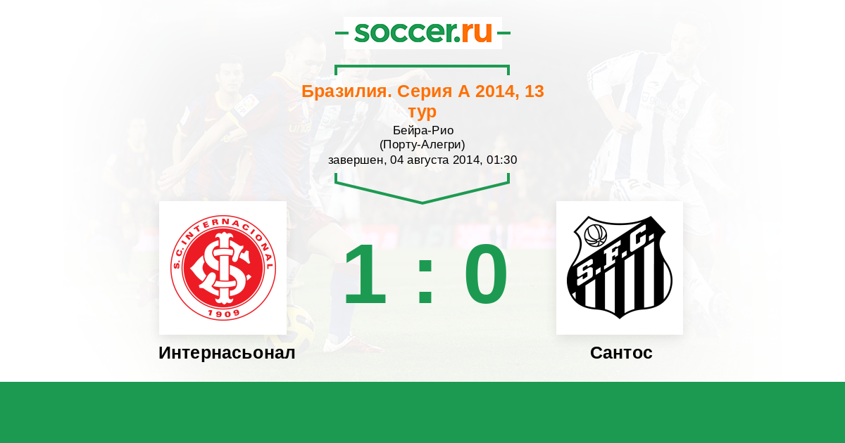 Бразилия. Серия А 02.11.2014 Сантос Логотип футбольный клуб Сантос (Сан-Паулу) 1:2 Логотип футбольный клуб Интернасьонал (Порту-Алегри) Интернасьонал