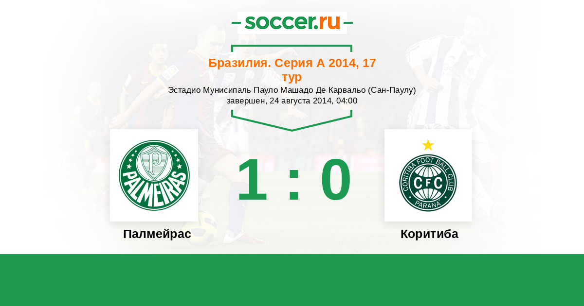 Бразилия. Серия А 19.09.2017 Палмейрас Логотип футбольный клуб Палмейрас (Сан-Паулу) 1:0 Логотип футбольный клуб Коритиба Коритиба