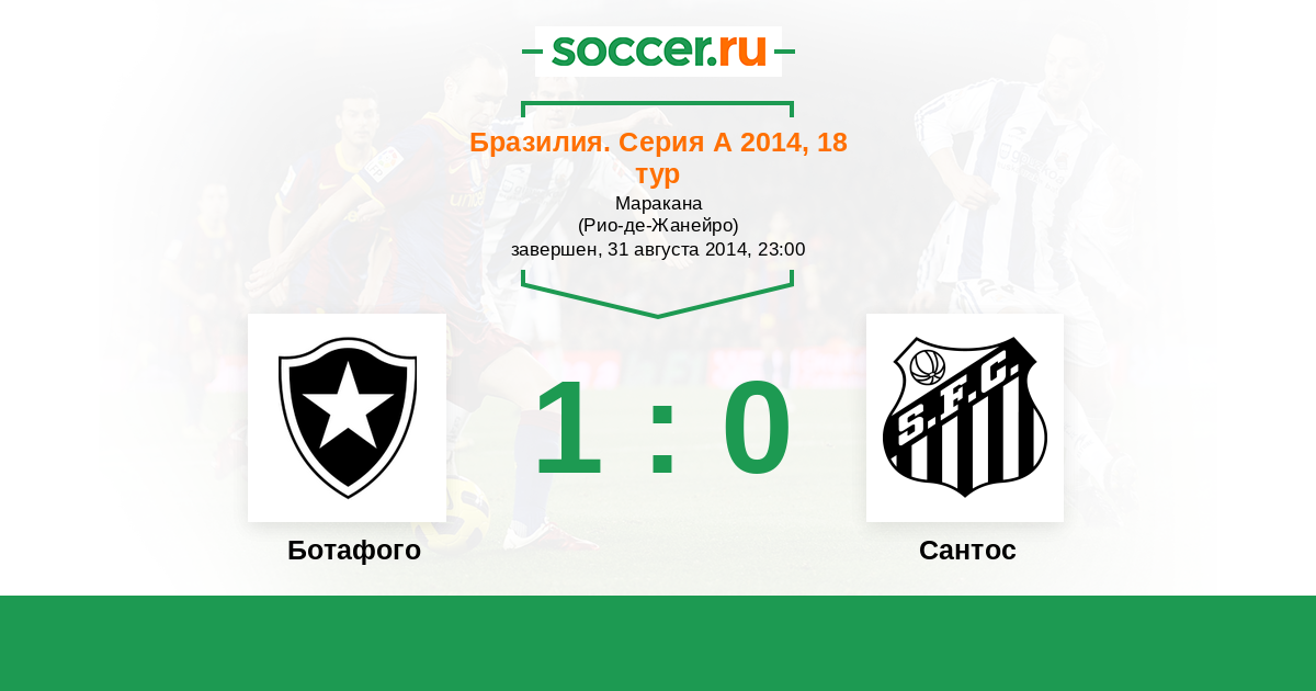 Бразилия. Серия А 30.11.2014 Сантос Логотип футбольный клуб Сантос (Сан-Паулу) 2:0 Логотип футбольный клуб Ботафого (Рио-де-Жанейро) Ботафого