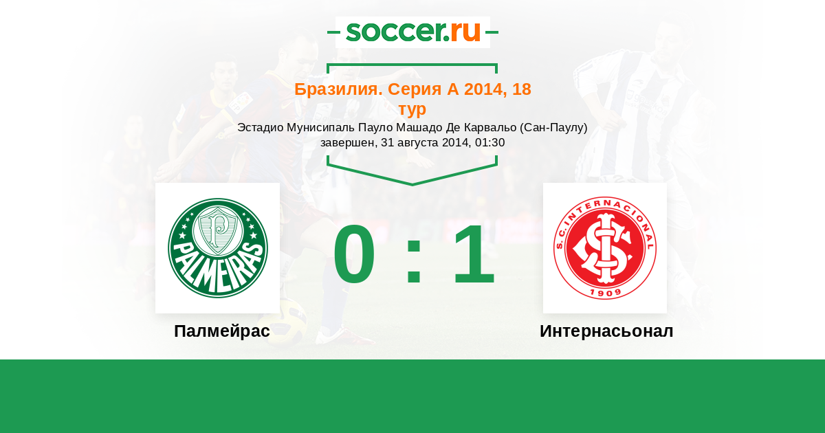 Бразилия. Серия А 05.06.2015 Палмейрас Логотип футбольный клуб Палмейрас (Сан-Паулу) 1:1 Логотип футбольный клуб Интернасьонал (Порту-Алегри) Интернасьонал