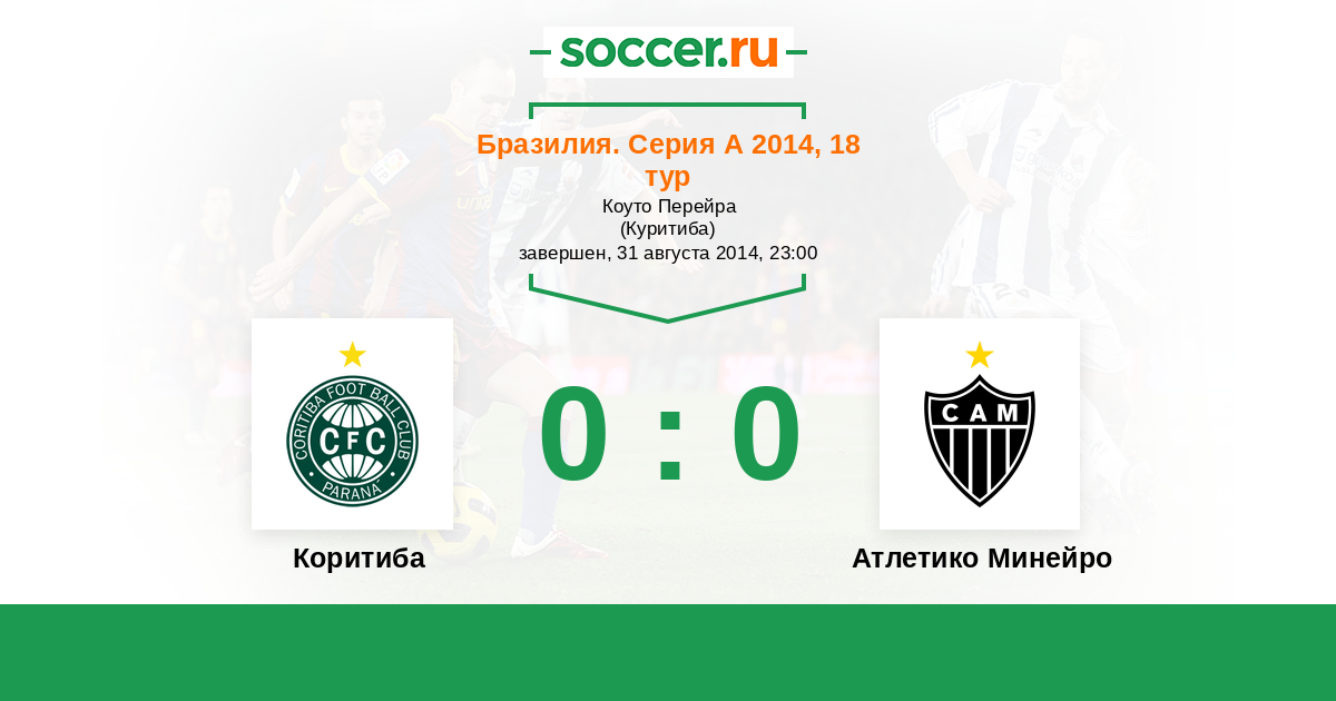 Бразилия. Серия А 01.12.2014 Атлетико Минейро Логотип футбольный клуб Атлетико Минейро (Белу-Оризонти) 1:2 Логотип футбольный клуб Коритиба Коритиба