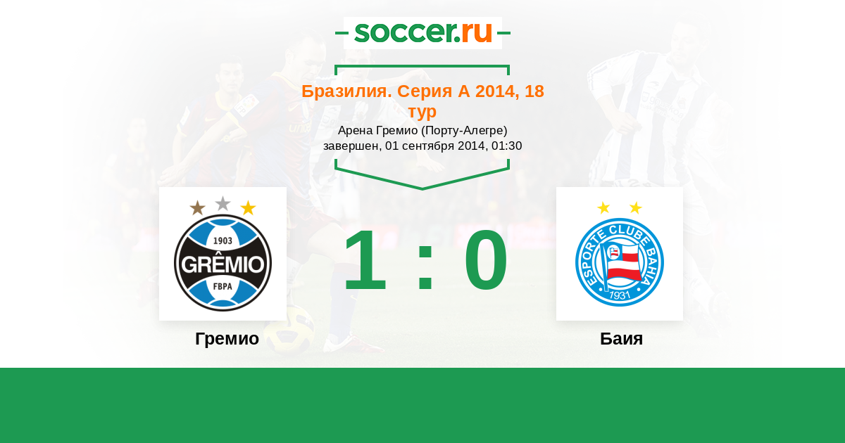 Бразилия. Серия А 01.12.2014 Баия Логотип футбольный клуб Баия (Салвадор) 1:0 Логотип футбольный клуб Гремио (Порту-Алегри) Гремио
