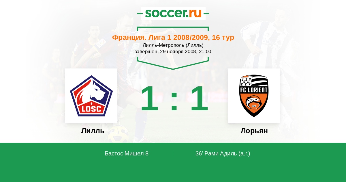 Протокол матча Лилль против Лорьян