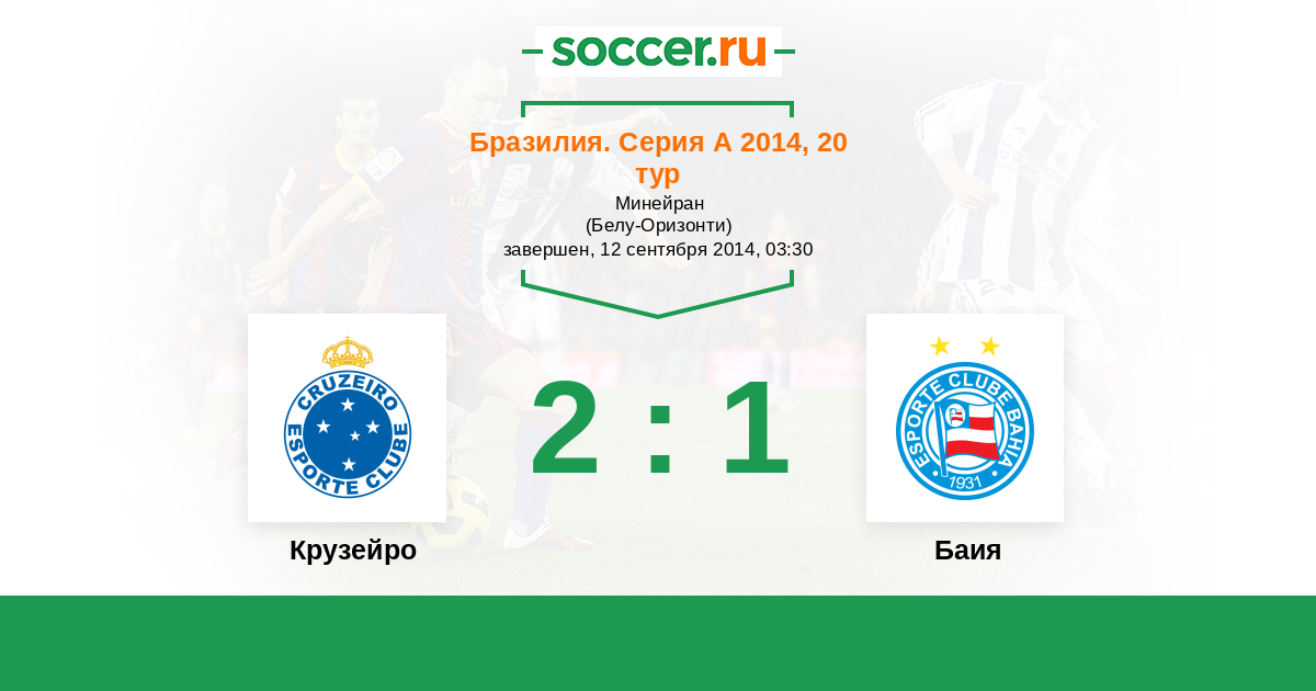 Бразилия. Серия А 20.04.2014 Баия Логотип футбольный клуб Баия (Салвадор) 1:2 Логотип футбольный клуб Крузейро (Белу-Оризонти) Крузейро