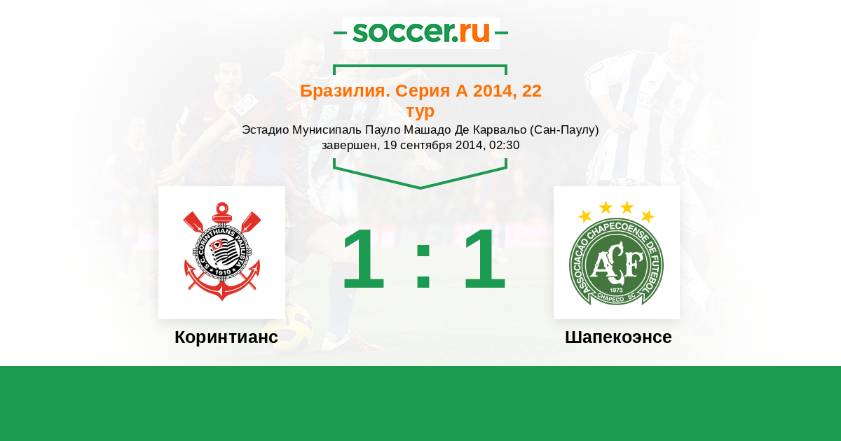 Бразилия. Серия А 29.10.2016 Коринтианс Логотип футбольный клуб Коринтианс (Сан-Паулу) 1:1 Логотип футбольный клуб Шапекоэнсе Шапекоэнсе