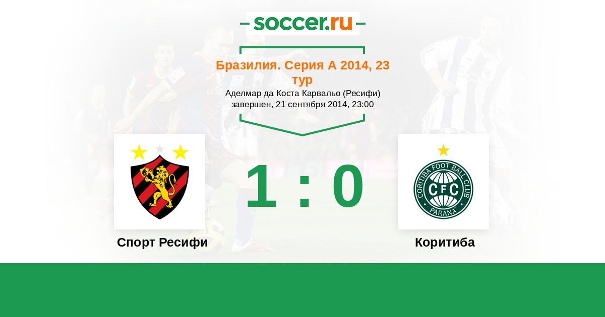 Бразилия. Серия А 12.05.2014 Коритиба Логотип футбольный клуб Коритиба 0:1 Логотип футбольный клуб Спорт Ресифи Спорт Ресифи