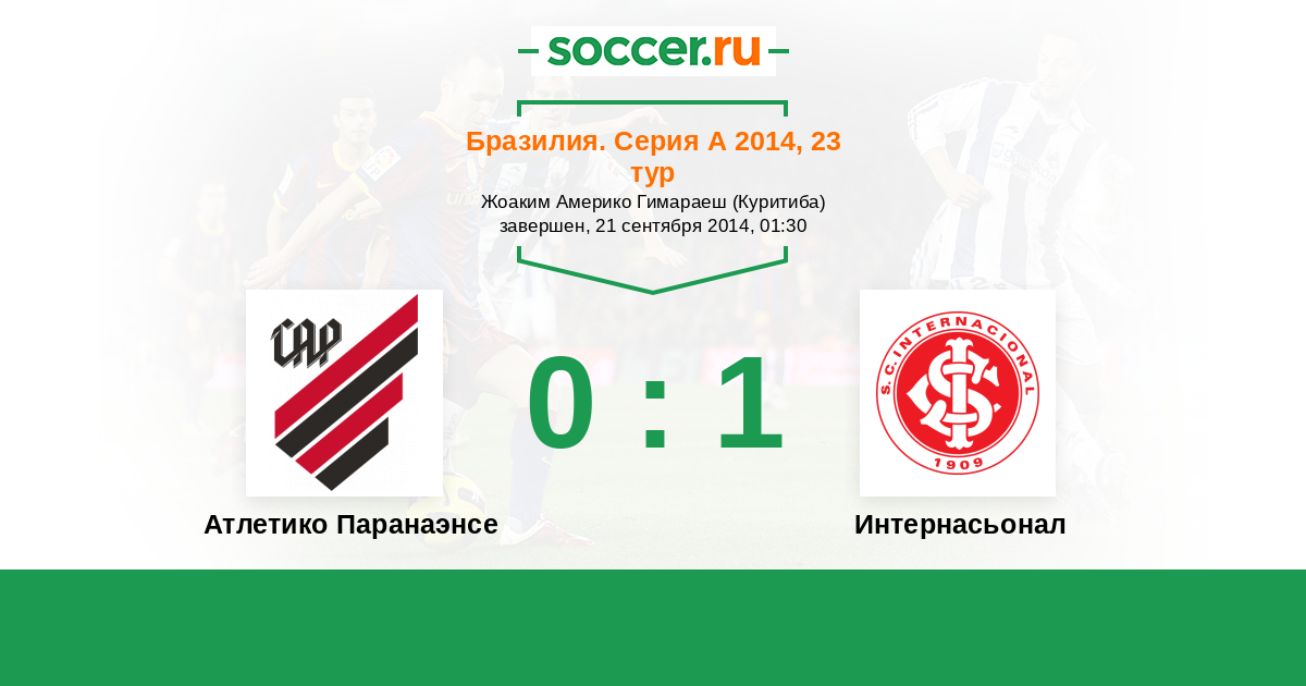 Бразилия. Серия А 11.05.2014 Интернасьонал Логотип футбольный клуб Интернасьонал (Порту-Алегри) 2:1 Логотип футбольный клуб Атлетико Паранаэнсе (Куритиба) Атлетико Паранаэнсе