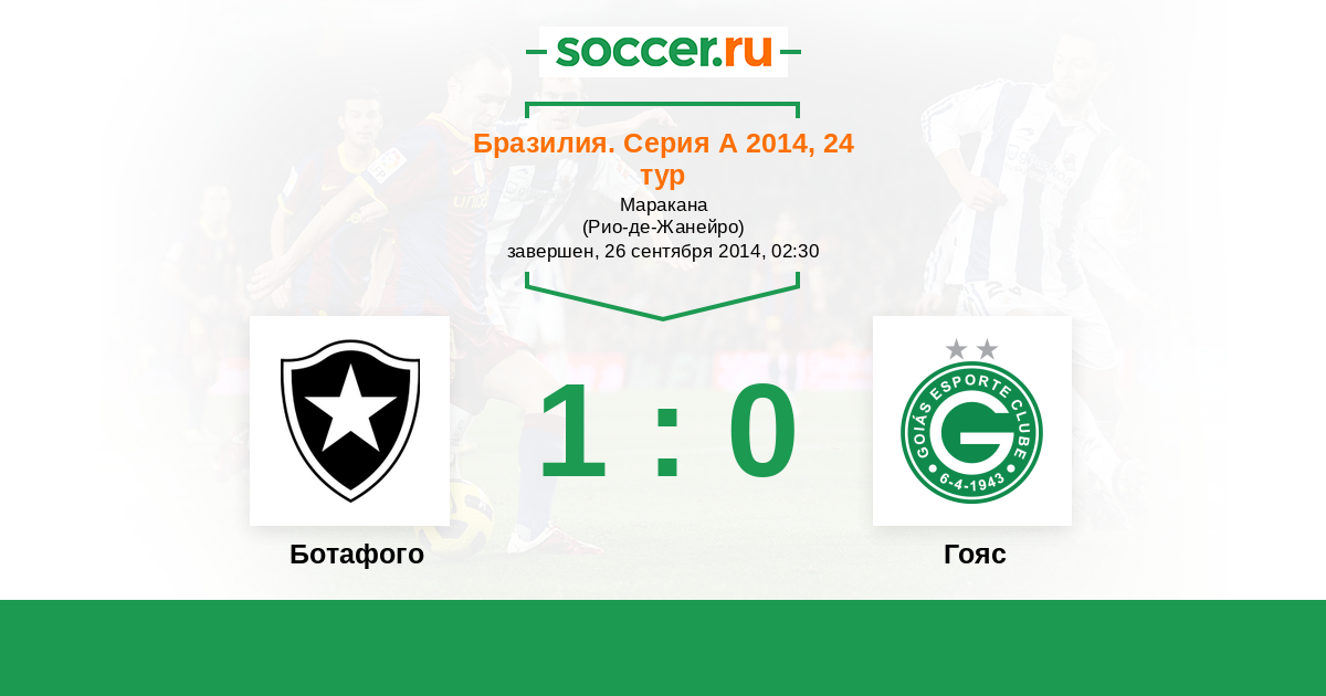 Бразилия. Серия А 15.05.2014 Гояс Логотип футбольный клуб Гояс (Гояния) 2:0 Логотип футбольный клуб Ботафого (Рио-де-Жанейро) Ботафого