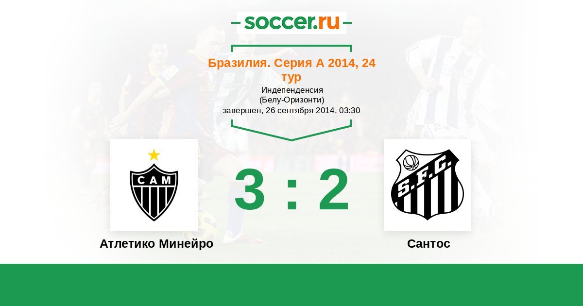 Бразилия. Серия А 19.05.2014 Сантос Логотип футбольный клуб Сантос (Сан-Паулу) 1:2 Логотип футбольный клуб Атлетико Минейро (Белу-Оризонти) Атлетико Минейро