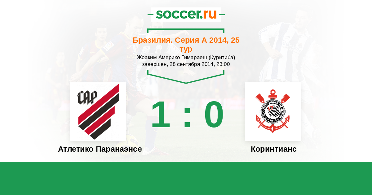 Бразилия. Серия А 22.05.2014 Коринтианс Логотип футбольный клуб Коринтианс (Сан-Паулу) 1:1 Логотип футбольный клуб Атлетико Паранаэнсе (Куритиба) Атлетико Паранаэнсе
