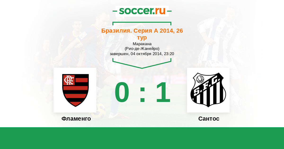 Бразилия. Серия А 25.05.2014 Сантос Логотип футбольный клуб Сантос (Сан-Паулу) 0:0 Логотип футбольный клуб Фламенго (Рио-де-Жанейро) Фламенго