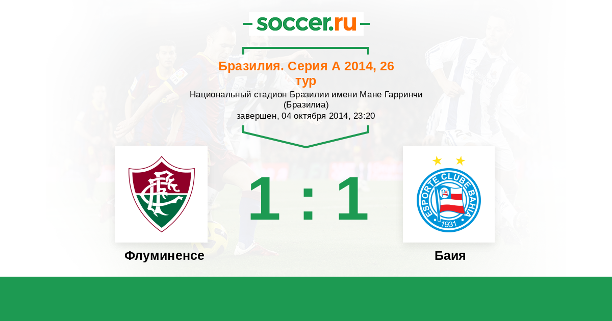 Бразилия. Серия А 25.05.2014 Баия Логотип футбольный клуб Баия (Салвадор) 0:1 Логотип футбольный клуб Флуминенсе (Рио-де-Жанейро) Флуминенсе