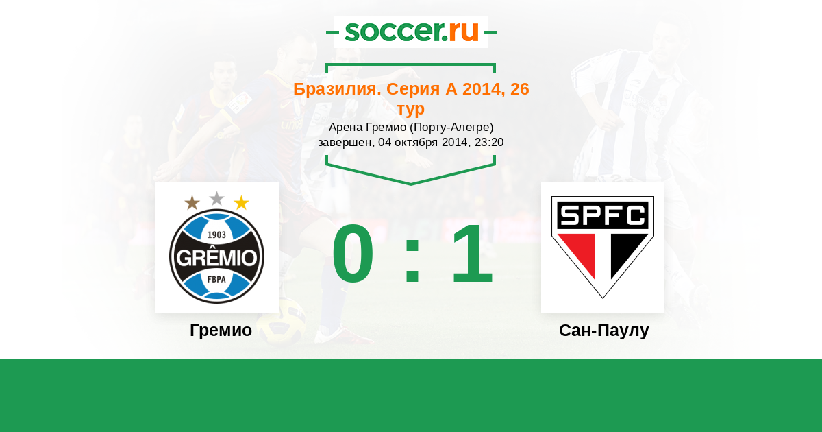 Бразилия. Серия А 25.05.2014 Сан-Паулу Логотип футбольный клуб Сан-Паулу 1:0 Логотип футбольный клуб Гремио (Порту-Алегри) Гремио