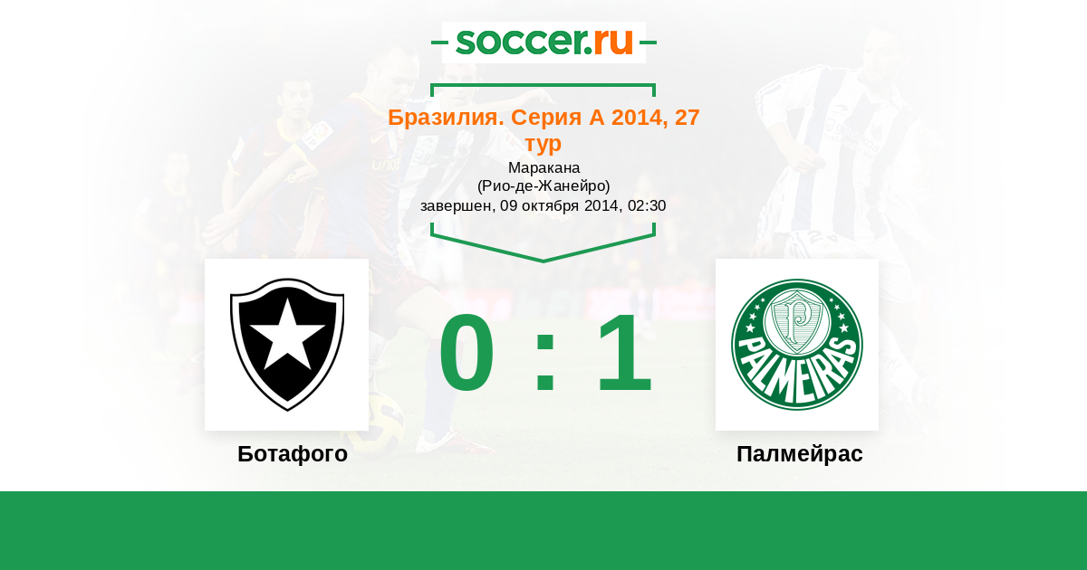 Бразилия. Серия А 29.05.2014 Палмейрас Логотип футбольный клуб Палмейрас (Сан-Паулу) 0:2 Логотип футбольный клуб Ботафого (Рио-де-Жанейро) Ботафого