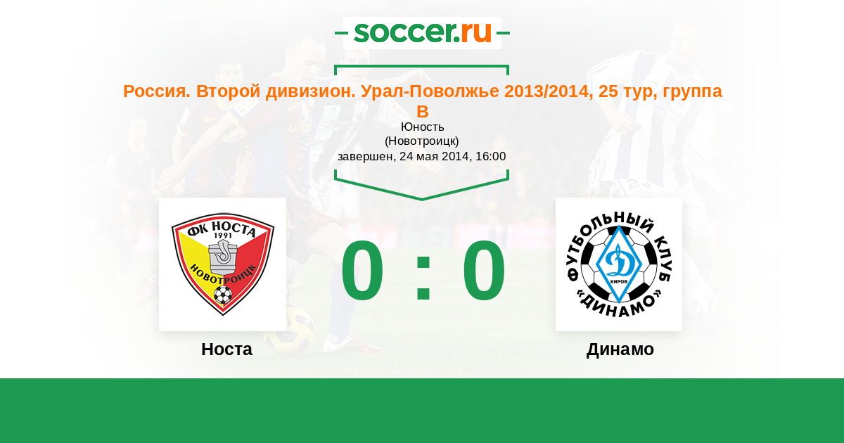 Россия. Вторая лига. Группа 4 27.08.2013 Носта Логотип футбольный клуб Носта (Новотроицк) 0:0 Логотип футбольный клуб Динамо Киров Динамо Киров