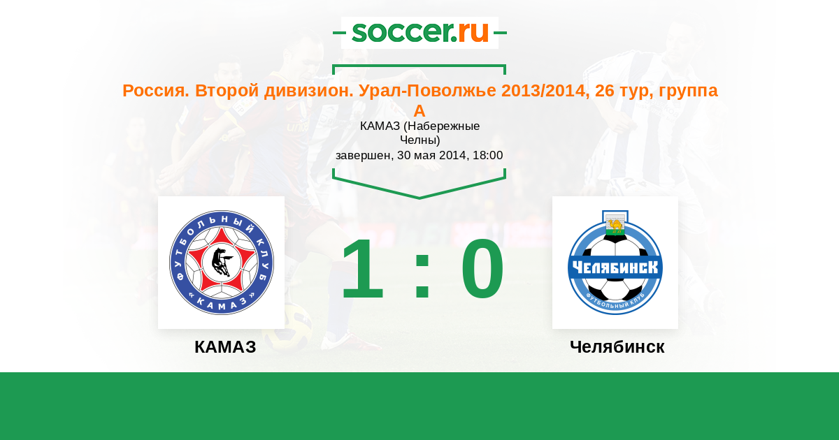 Россия. Вторая лига. Группа 4 27.08.2014 КАМАЗ Логотип футбольный клуб КАМАЗ (Набережные Челны) 3:0 Логотип футбольный клуб Челябинск Челябинск