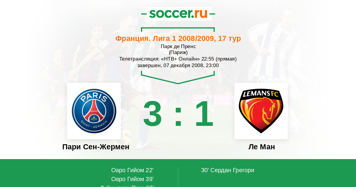 Протокол матча Пари Сен-Жермен против Ле Ман