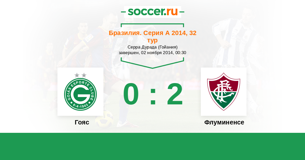 Бразилия. Серия А 04.08.2014 Флуминенсе Логотип футбольный клуб Флуминенсе (Рио-де-Жанейро) 2:0 Логотип футбольный клуб Гояс (Гояния) Гояс
