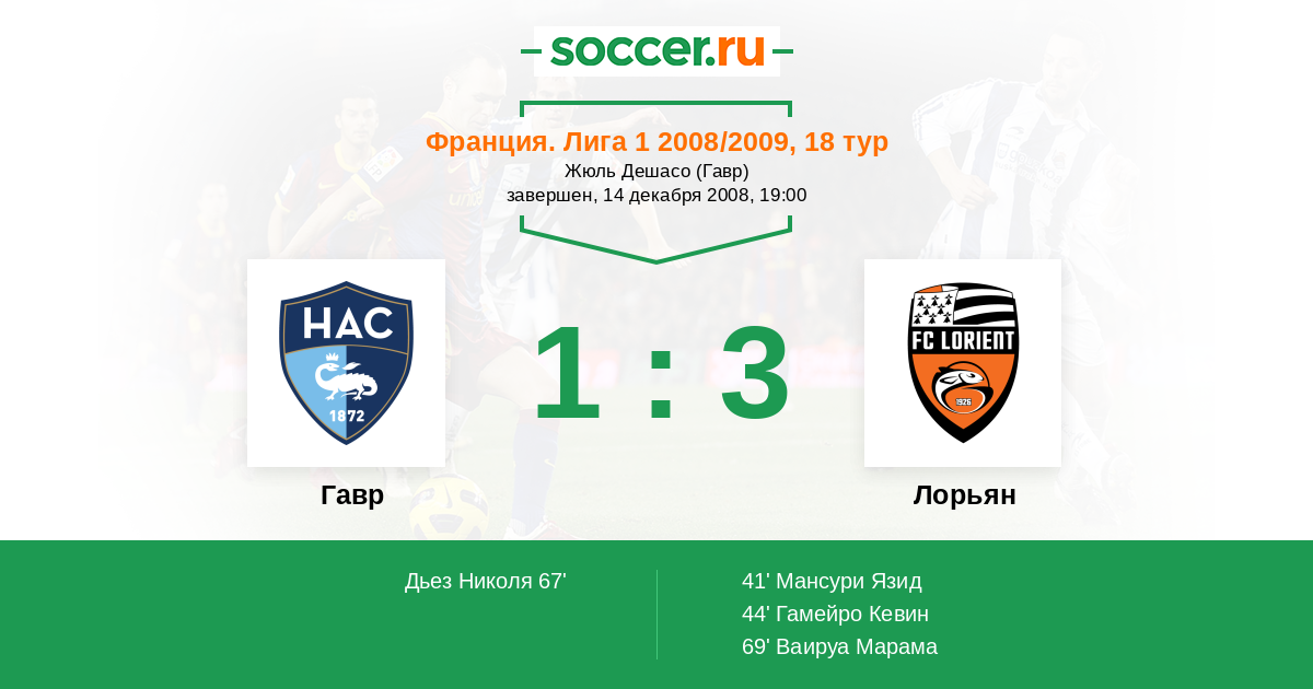 Протокол матча Гавр против Лорьян