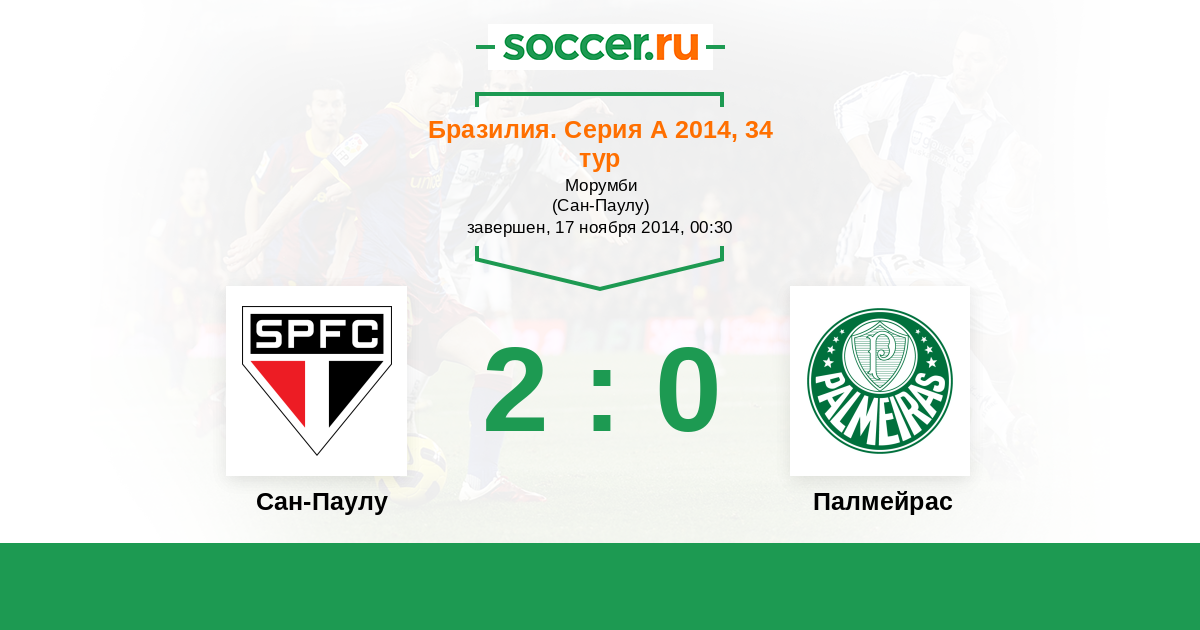 Бразилия. Серия А 17.08.2014 Палмейрас Логотип футбольный клуб Палмейрас (Сан-Паулу) 1:2 Логотип футбольный клуб Сан-Паулу Сан-Паулу