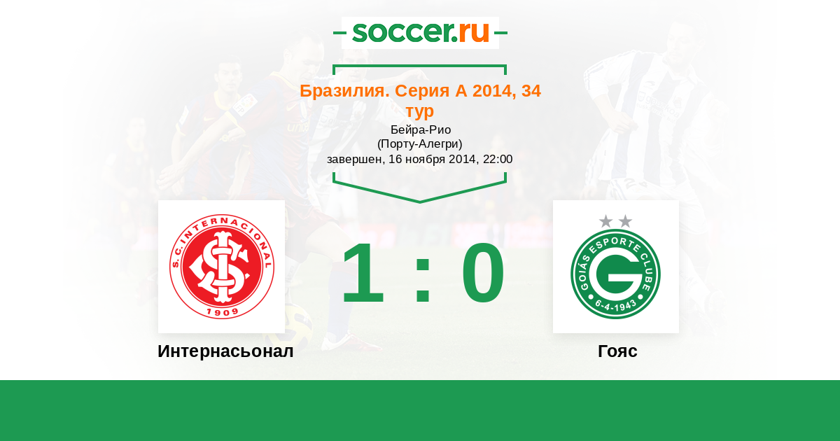 Бразилия. Серия А 17.08.2014 Гояс Логотип футбольный клуб Гояс (Гояния) 0:1 Логотип футбольный клуб Интернасьонал (Порту-Алегри) Интернасьонал