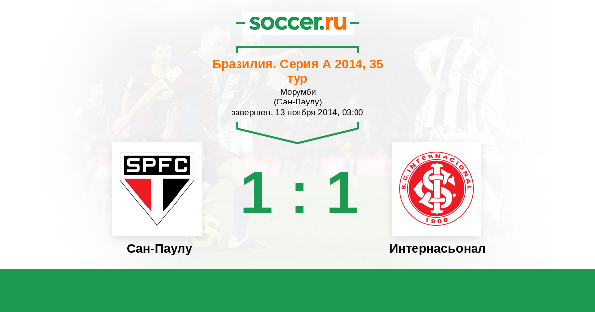 Бразилия. Серия А 12.10.2011 Сан-Паулу Логотип футбольный клуб Сан-Паулу 0:0 Логотип футбольный клуб Интернасьонал (Порту-Алегри) Интернасьонал