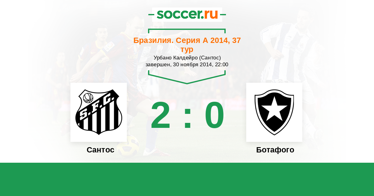 Бразилия. Серия А 31.08.2014 Ботафого Логотип футбольный клуб Ботафого (Рио-де-Жанейро) 1:0 Логотип футбольный клуб Сантос (Сан-Паулу) Сантос