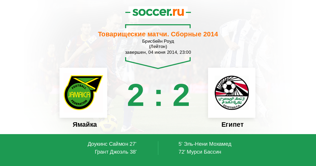 Протокол матча Ямайка против Египет