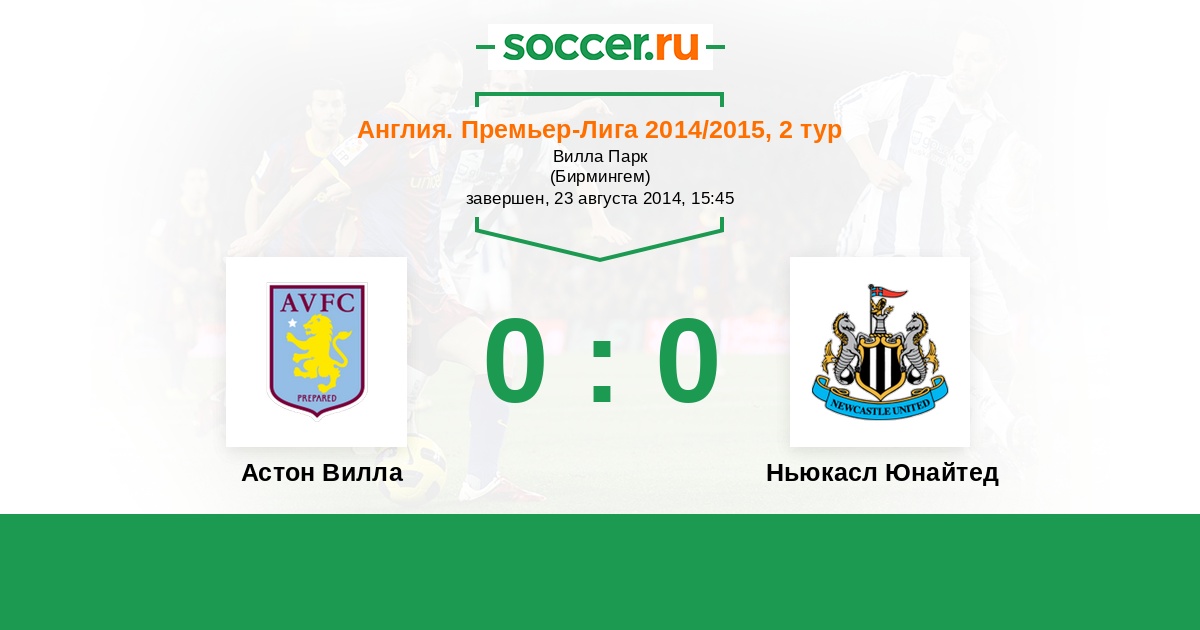 Протокол матча Астон Вилла против Ньюкасл Юнайтед