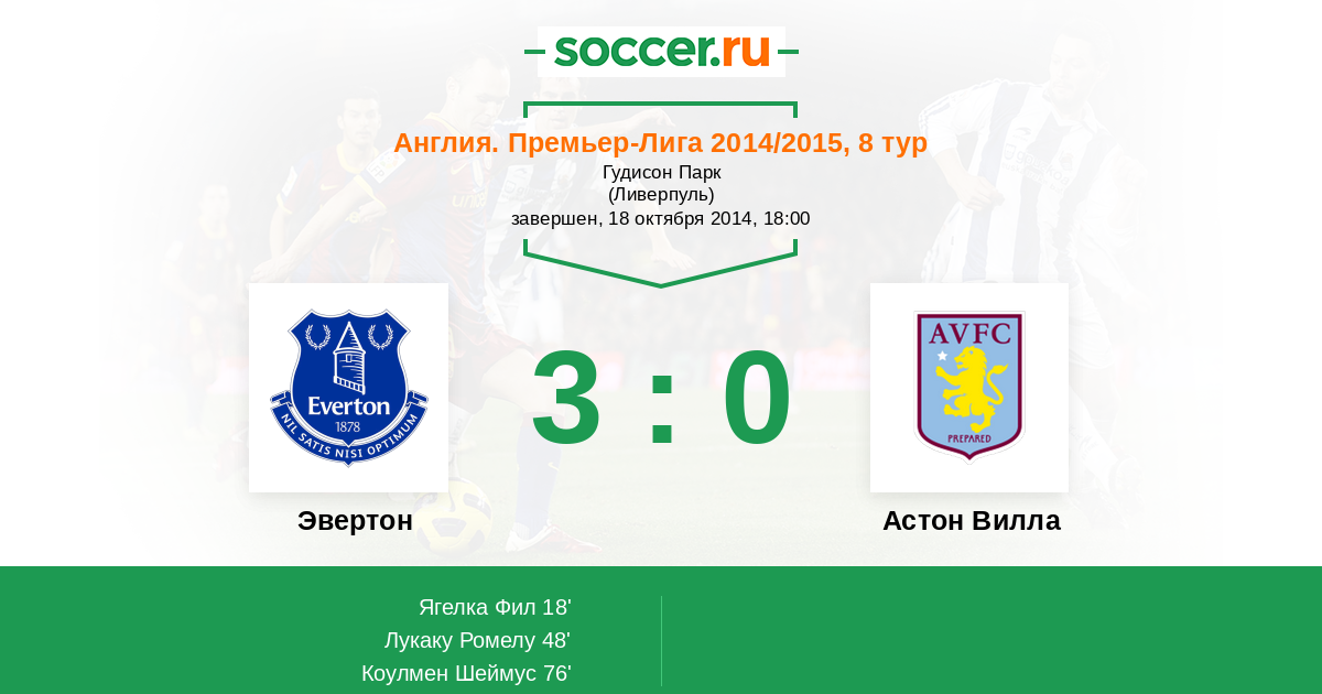 Протокол матча Эвертон против Астон Вилла