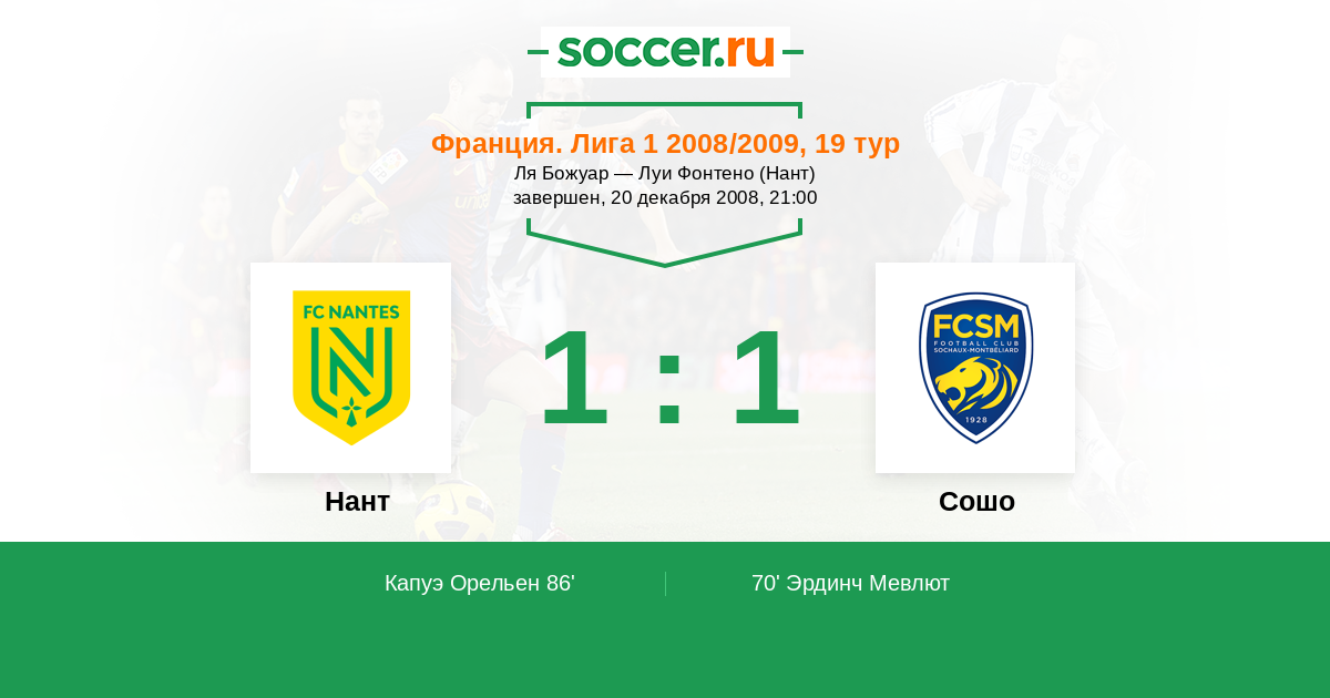 Протокол матча Нант против Сошо