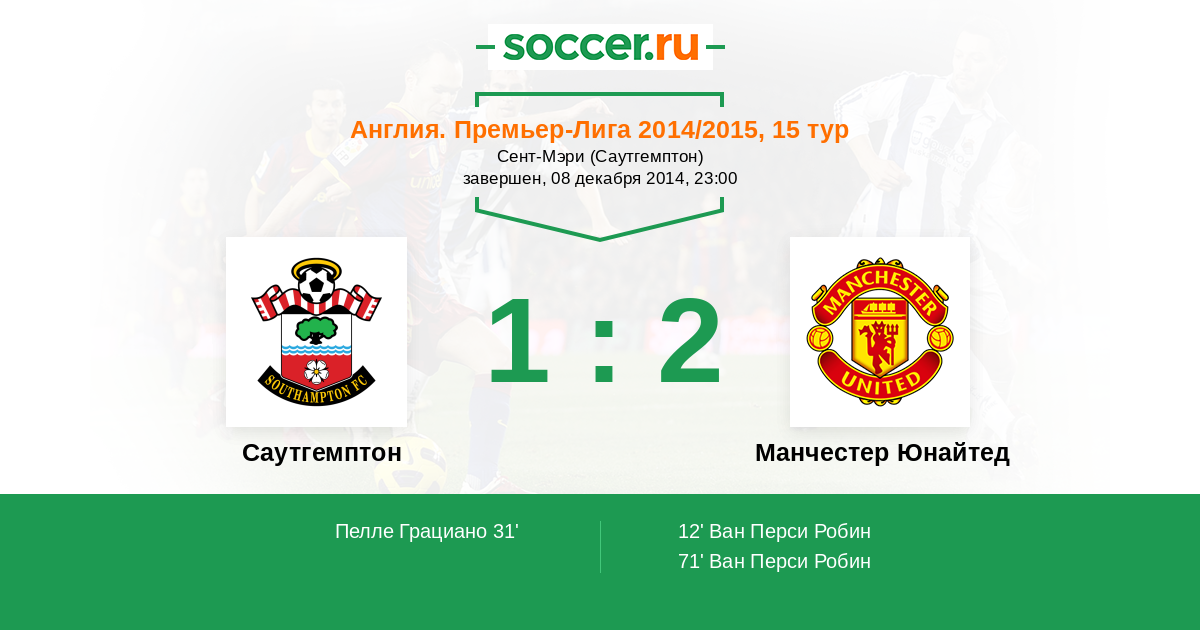 Протокол матча Саутгемптон против Манчестер Юнайтед
