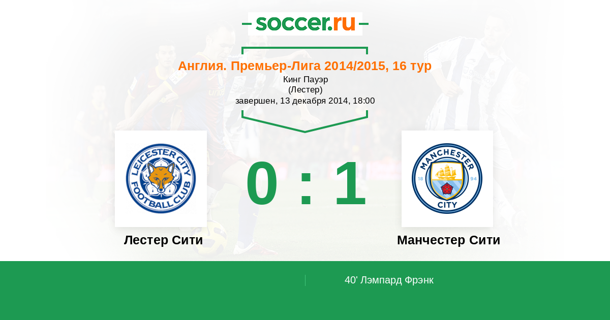 Протокол матча Лестер Сити против Манчестер Сити